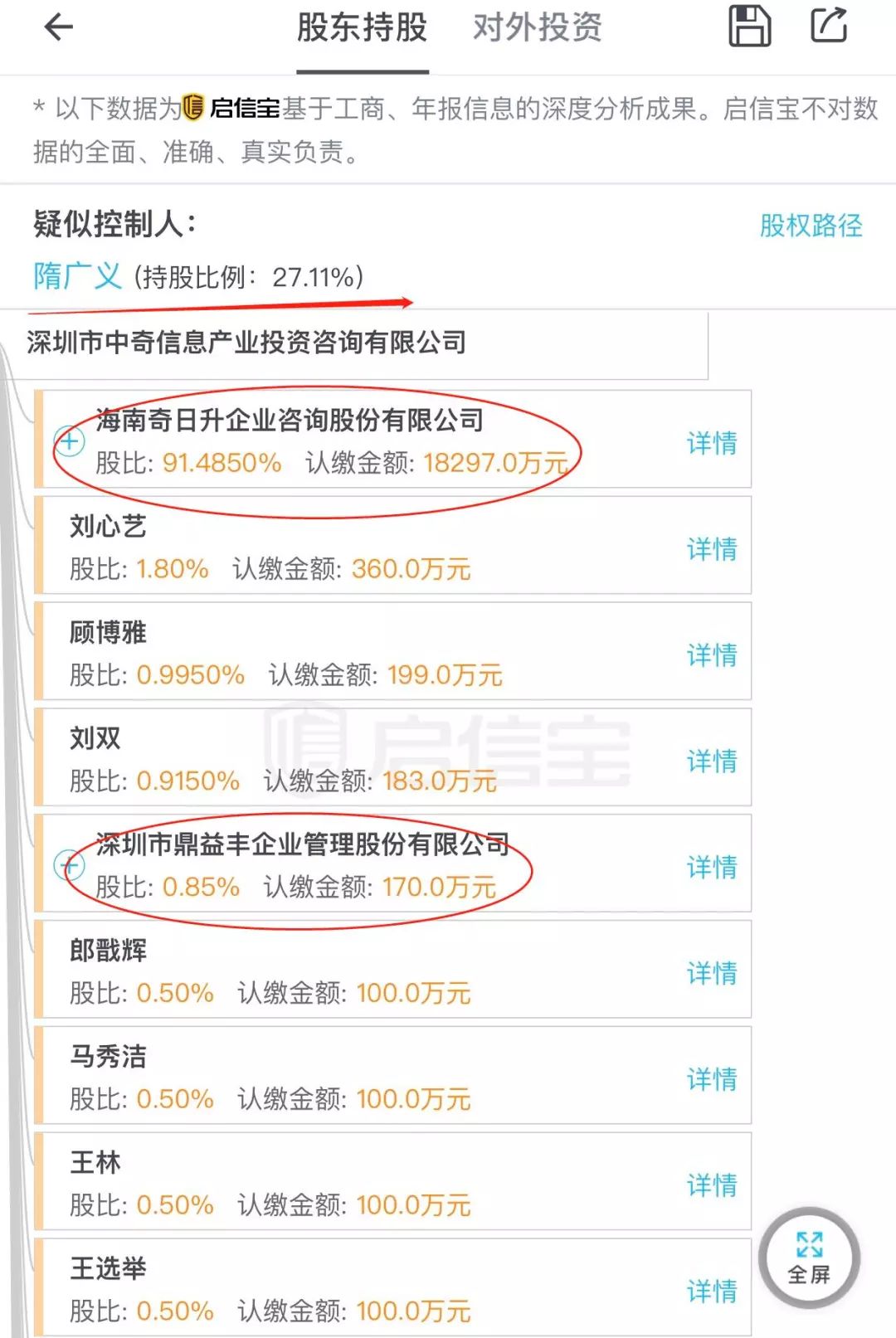 深圳市中奇信息产业投资咨询有限公司的疑似实控人就是鼎益丰集团的董事局主席隋广义。