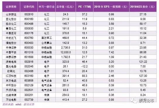 (8)传媒:推荐分众传媒,公司为电梯行业的市场份额绝对领导者,该行业的壁垒是规模和资本,公司具备优势;竞争对手财报差强人意,市场预期对竞争态势预期改善,这一度为压制公司的因素之一;目前股价对应2019年PE18倍,具备吸引力。