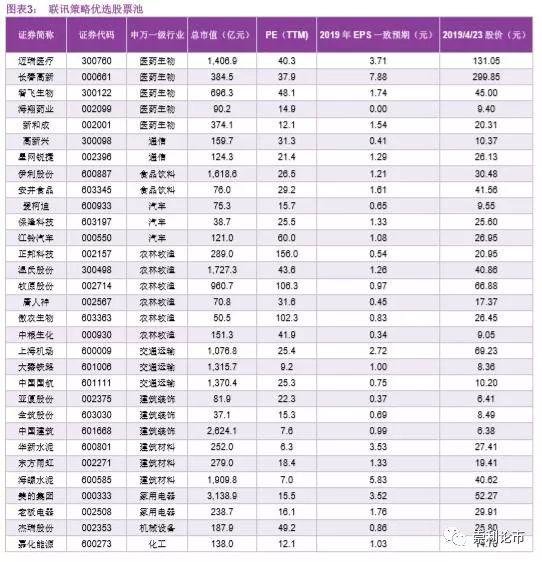 四、联讯策略优选股票池