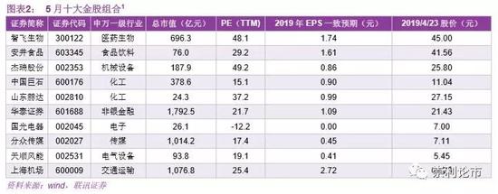 二、5月十大金股组合及推荐理由