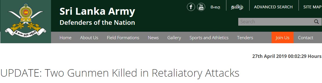斯里兰卡军方声明,确认两名武装分子被击毙