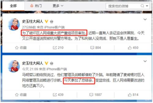 在史玉柱通过微博密集发声之际,巨人网络官方也发声辟谣,官方声明称: