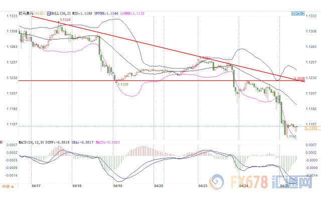 周四(4月25日),欧元兑美元延续上一交易日跌势。瑞银全球财富管理报告显示,不论谁接替德拉基成为欧洲央行的下一任行长,都有可能会令欧元反弹。另一方面,欧元区两大经济体的信心指数意外恶化,表明该地区要实现期待已久的增长反弹可能尚需时日。