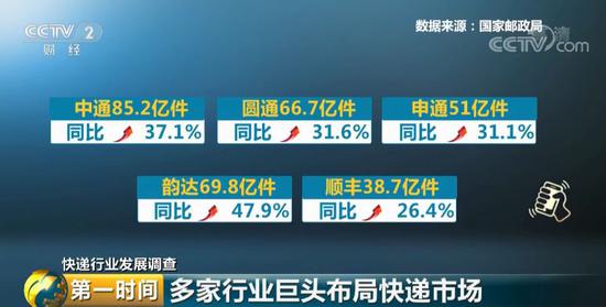 这几家巨头的快递量增速都明显高于行业平均水平,对此专家表示,未来我国大量快递业务将明显向少数几家行业巨头集中。