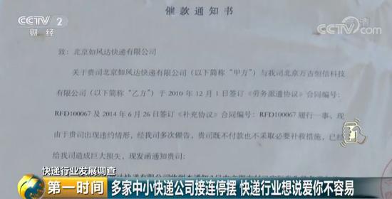 但是进入2019年以来,一些中小快递公司却接连出现问题,原有的快递业务也被暂停,一些公司陷入经营困难和破产的边缘。对此,记者进行了调查。
