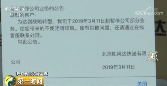 在如风达官网上发布了3月11日起暂停公司业务的公告,随后记者又拨打了如风达的客服电话4000106660,听到了这样的语音留言:对不起,该号码暂不提供服务。