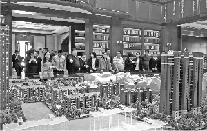 销售小高潮已在白沟另一个公寓项目售楼处上演。4月5日,该项目开盘,记者看到售楼处人头攒动,沙盘周边一有空缺立马就有购房者补齐缺口。人多嘈杂,销售人员需要戴着麦克风讲解。