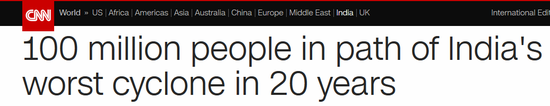 原标题:印度将迎20年来最强“热带气旋” 1亿人受影响近80万人撤离