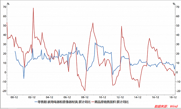 家电是典型的周期性消费品,由房地产行业驱动。研究结果表明,尽管家电销售通常滞后于地产销售6-9个月,地产销售以及随后的交房高峰带动房屋装修需求上升,以及家电的新增销售。