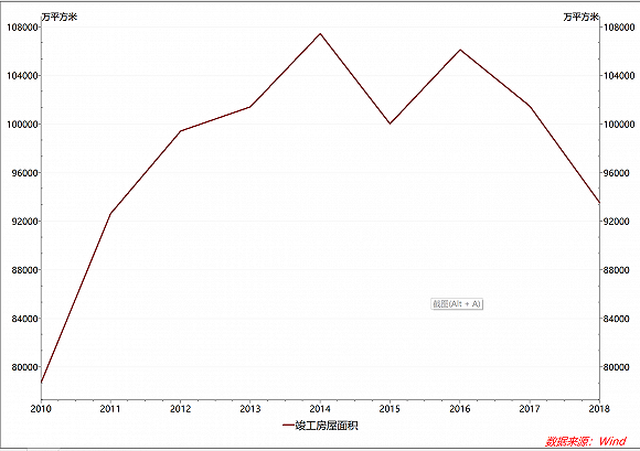 基于房地产与家电行业的关联关系,地产行业短期内不会恢复此前的高点,房地产行业的顶部,决定了下游家电行业的顶部,房地产竣工面积在2014年超过10.7亿平米的历史最高峰以后,开始逐年回落。