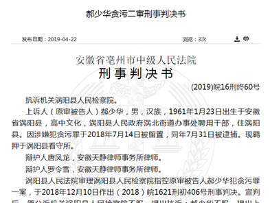 案发后,涡阳县人民法院经审理后以贪污罪判处郝少华有期徒刑1年6个月。