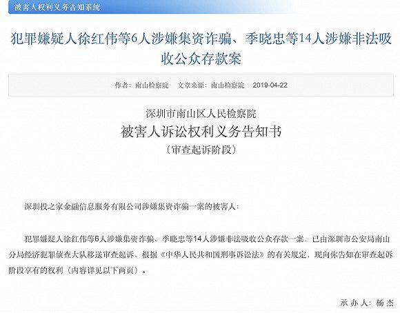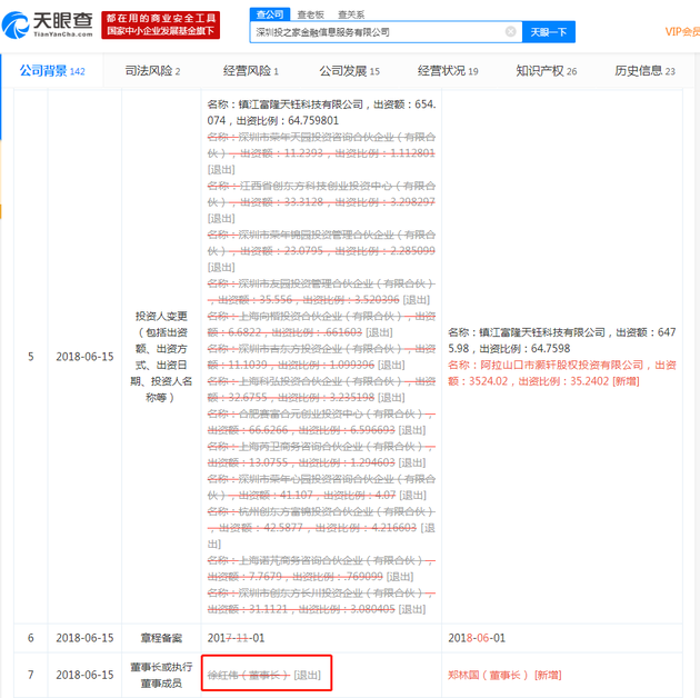 ÌìÑÛ²éÊý¾ÝÏÔʾ£¬Í¶Ö®¼ÒÖ÷Ì幫˾ΪÉîÛÚͶ֮¼Ò½ðÈÚÐÅÏ¢·þÎñÓÐÏÞ¹«Ë¾£¬ÔÚ2018Äê7Ô±»¾¯·½Á¢°¸Ç°Ò»¸öÔ£¬¸Ã¹«Ë¾13λ¹É¶«Í˳ö£¬ÐÂÔö¹É¶«å°ÐùͶ×Ê£¬×¢²á×ʱ¾ÓÉ1ǧÍòÓàÔª±ä¸üΪ1ÒÚÔªÈËÃñ±Ò£¬Í¬Ê±¶Ê³¤ÓÉÍø´ûÖ®¼Ò´´Ê¼ÈËÐìºìΰ±ä¸üΪ֣ÁÖ¹ú¡£Ä¿Ç°¸Ã¹«Ë¾×î´ó¹É¶«ÎªÕò½¸»Â¡£¬ÐìºìΰͬÑùÓÚÁ¢°¸Ç°Ò»¸öÔÂÍ˳ö¡£