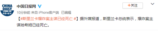 原标题:斯里兰卡爆炸案主犯已经死亡