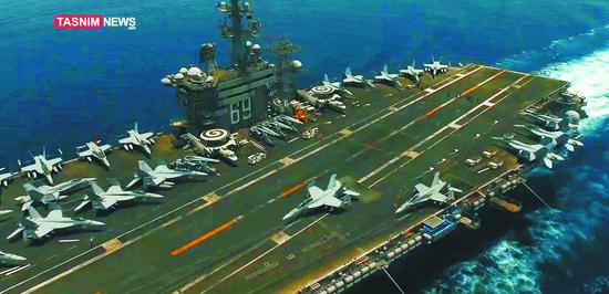 [环球时报报道 特约记者 王雪臣]据“今日俄罗斯”电视台、美国《星条旗报》等媒体28日报道,伊朗塔斯尼姆通讯社日前发布了一段航拍视频,显示伊朗国产无人机对美国航母进行了一次抵近侦察,拍下了高清特写镜头。