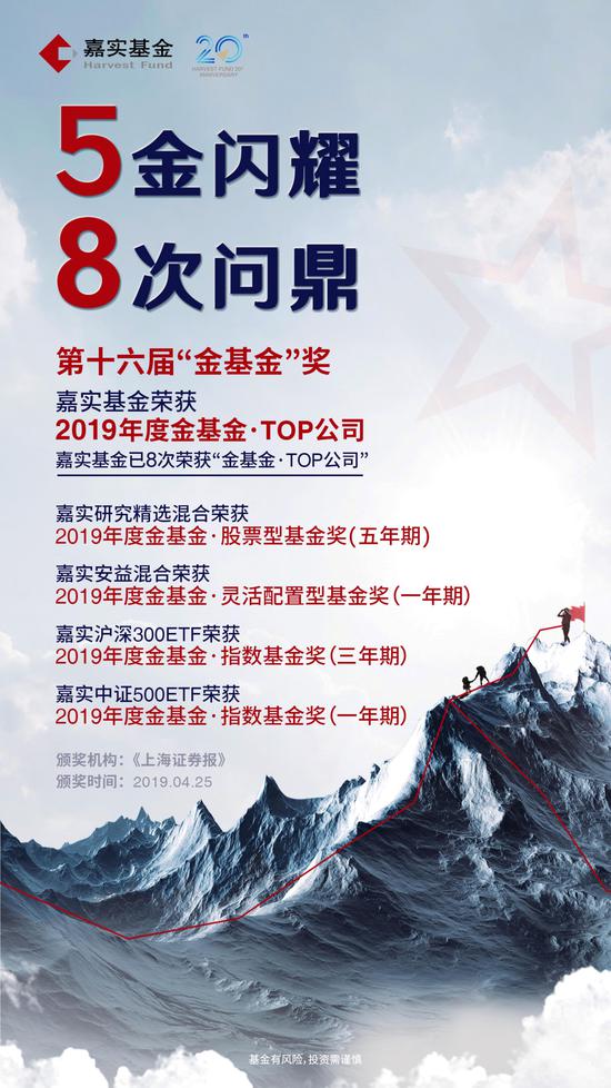 日前,第十六届中国基金业“金基金奖”正式揭晓,凭借突出的投研实力,嘉实基金摘得包括公司和产品在内的5项大奖。公司奖项方面,嘉实基金获得最具含金量的“金基金TOP公司”,这是其第8次获此殊荣;产品奖项方面,嘉实研究精选获得“五年期股票型基金奖”,嘉实安益获得“一年期灵活配置型基金奖”,嘉实沪深300ETF和嘉实中证500ETF均获分别获得“三年期指数基金奖”和“一年期指数基金奖”。