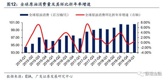 中美经济韧性提振了原油需求。2019年1Q全球原油消费量环比折年率为0.51%。从季节性上看,2015-2018年历年一季度原油消费量环比折年率分别为:-1.55%、-1.56%、-3.22%及-0.65%。换言之,今年原油需求显著好于季节性。当然,这也与2018年4Q全球原油消费量环比折年率偏低(-0.49%)有关。