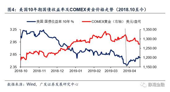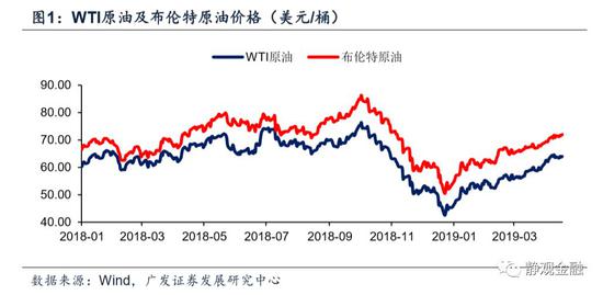2018年4Q,WTI原油及布伦特价格分别重挫38.0%及35.0%,导致通胀预期骤降;2019年初至4月23日,WTI原油及布伦特原油又分别反弹46.0%和38.5%,令此前退出投资者视野的高通胀预期逐渐回归。