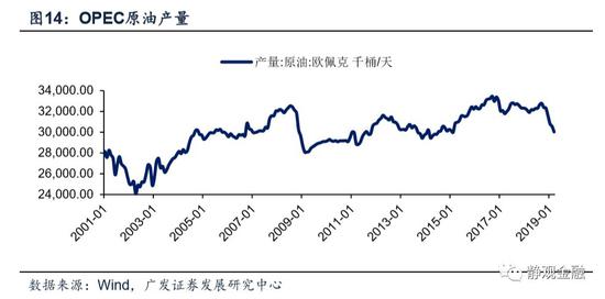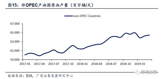 由前文图14可知,截止2019年3月OPEC原油产量已经降至2014年7月扩产前水平。我们认为2014年7月OPEC突然增加供给的主因就是防止美国页岩油规模化生产后侵蚀OPEC在全球原油市场中的份额。2018年10月以来,OPEC不断减产的目的无非是提振原油价格,但此过程却推升了美国的原油供给量,OPEC减产实属为美国做嫁衣。在此背景下,OPEC在未来一段时间重新调整减产计划的可能性显著上升。