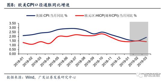 此外,尽管一季度欧洲结束了扩表、美联储也仍在缩表,但欧美央行均给出了未来的宽松信号:3月7日欧洲央行表示9月将重启定向长期再融资操作(TLTRO)[1];3月21日美联储议息会议中明示了今年四季度在不扩表背景下增持美债(同步削减MBS)的操作,也为日后扩表提供了线索(详见2019年3月21日报告《美紧缩周期即将结束,有何影响?》) 。加上过去数月欧美CPI口径通胀同比增速中枢下移等基本面因素,年初至3月底欧美利率债收益率中枢下移。
