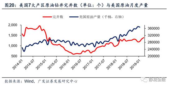 图20所示,2016年2Q以来美国7大页岩油产区的原油钻井完井数进入上升趋势,尽管2018年4Q国际油价重挫过程令完井数小幅回落,但2019年1-3月再度回升至4年新高。完井数大约领先美国原油产量4-8个月,也即未来2Q-3Q内美国原油产量大概率继续攀升。