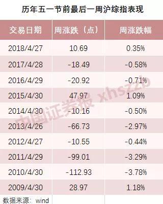 Wind数据统计显示,2009年至2018年的10年间,五一节前的最后一周,上证综指除了在2009年、2015年和2018年周涨幅为正之外,其余7年均为负。换一句话说,近10年,沪综指五一节前最后一周涨跌比率为3:7。