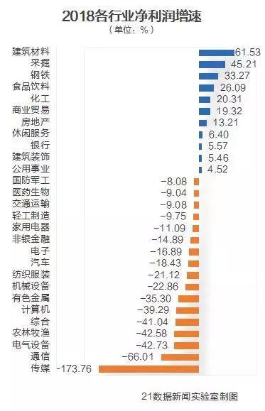 此外,房地产、化工、采掘、建筑装饰、交通运输、钢铁、食品饮料等行业的盈利也在千亿级别。