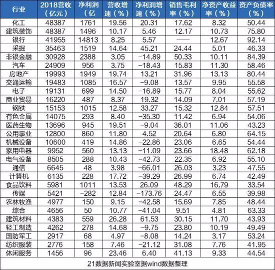 具体来说,哪些行业最赚钱?哪些行业净利增长较快?哪些行业的毛利率高?哪些行业的净资产收益率高?21数据新闻实验室用8张图带你快速浏览各行业景气度。