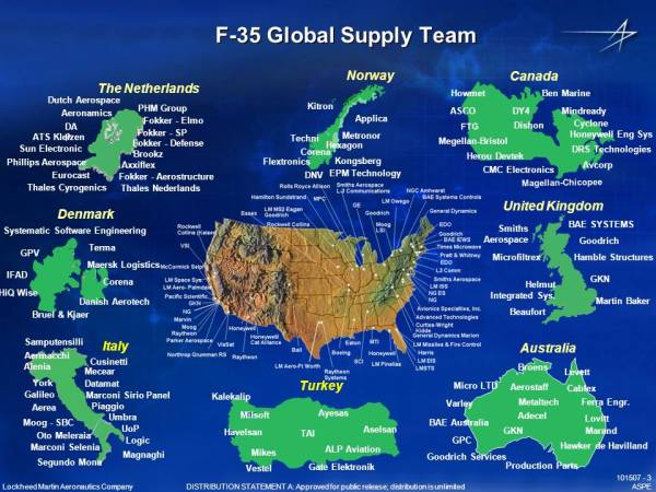 美军F-35战机由9个国家上百家公司提供零部件供应