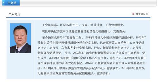 2015年12月,王会民履新驻中国证券监督管理委员会纪检组组长,至今逾3年。