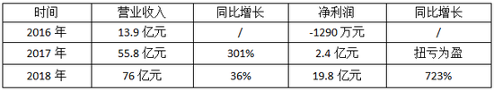 3月14日,乐信发布2018年未经审计的财务报告显示,公司全年营业收入76亿元;净利润19.8亿。乐信2017年财报显示,公司全年营业收入55.8亿元,净利润2.4亿元;乐信招股书显示,2016年营业收入13.9亿元,净亏损1290万元。