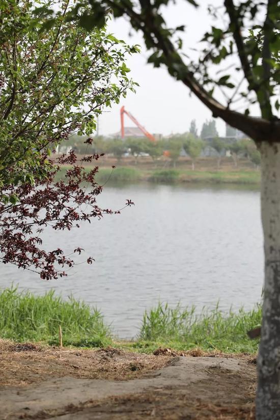 河对岸就是“华堂”建筑群,建筑机械正在作业。图/本刊记者 董洁旭 摄