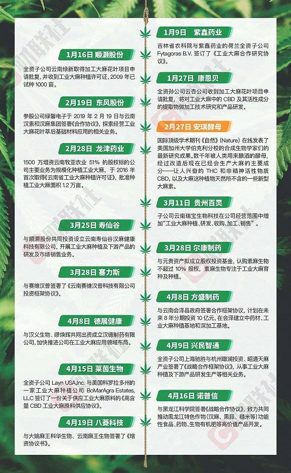 一图看懂工业大麻概念股“炒作”时间线 来源:财联社游资炒作蹭热点见“麻”就涨