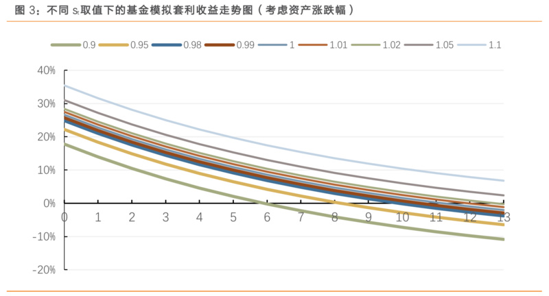 若考虑其他资产的涨跌情况(因为基金不只是持有乐视一支股票),假设基金持有乐视网股票为10%,在不同的S取值下,套利收益为: