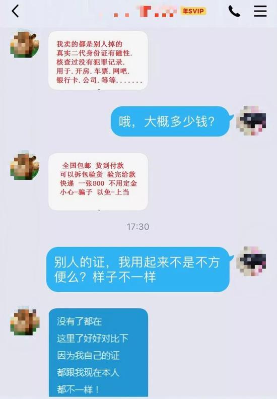 在交谈中,一个卖家告诉长安街知事(微信ID:Capitalnews),他们并非制作身份证,而是售卖别人丢失的真实二代身份证,内含芯片有磁性,经核查没有犯罪记录,可用于酒店开房间、进网吧登记、购买车票、办理银行卡、开办公司等。