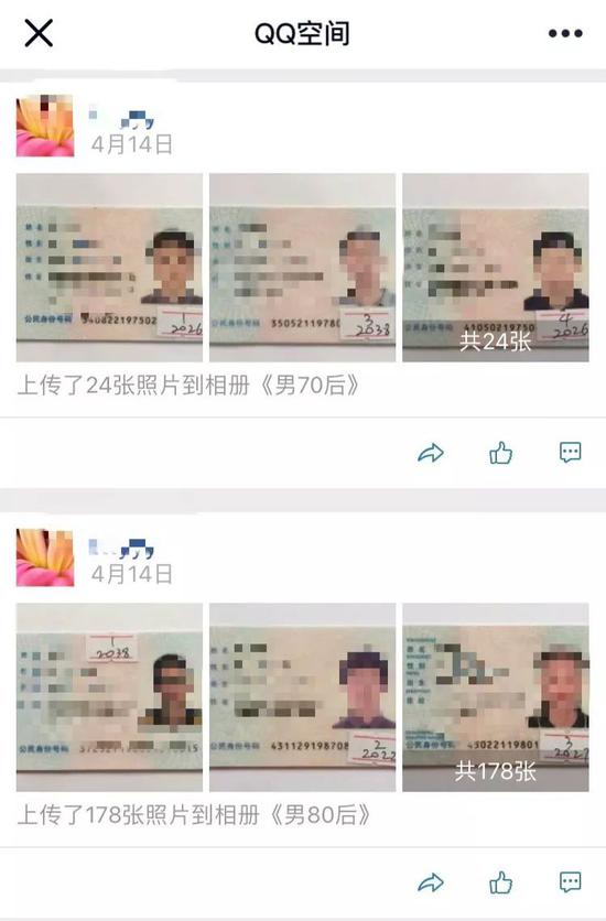 长安街知事(微信ID:Capitalnews)发现,该买家提供的相册中,共有男性身份证399张,女性身份证82张。