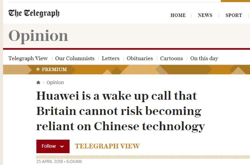 其中《电讯报》就在他们的社评中要求英国政府“不能依赖中国的科技”,“不能冒这个险”。