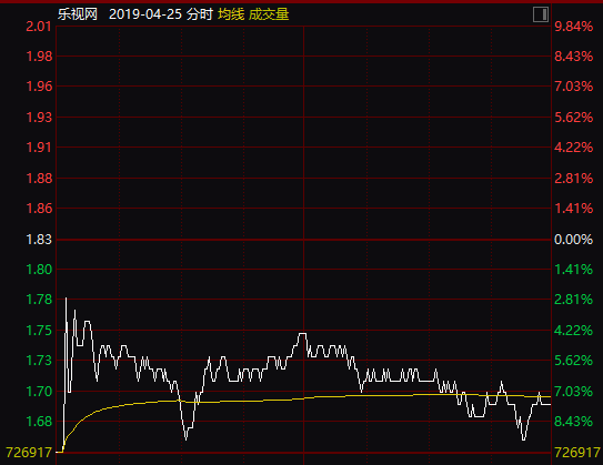 作为曾经的创业板明星,乐视网在2015年“为梦想窒息”最巅峰的时候,股票市值最高曾达1784亿元,当时股价为44.72元(复权),如今股价仅为1.69元,市值为67.4亿元。
