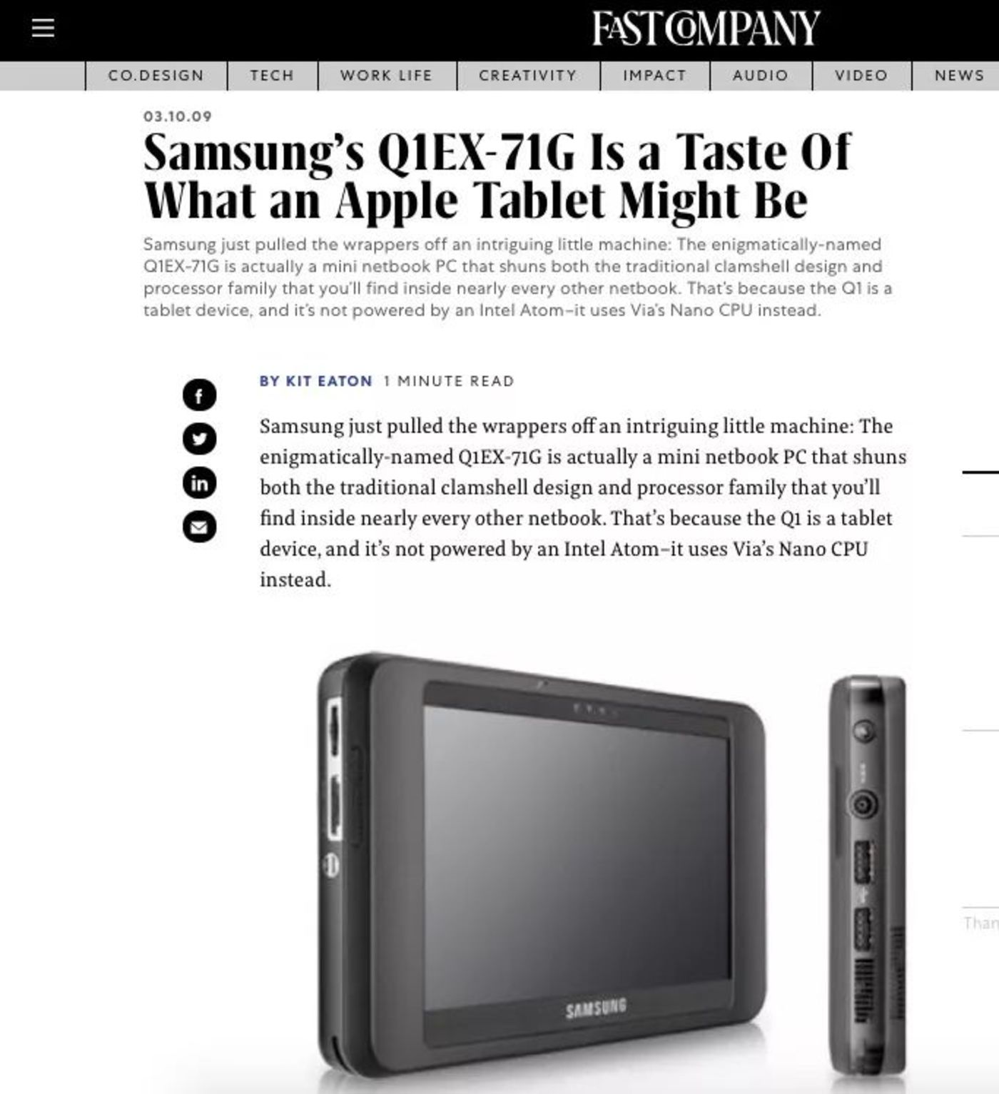 推出Galaxy手机并非三星首次与苹果竞争。它已经在销售MP3音乐播放器和PC,推出了运行微软Windows的Q1EX-71G平板电脑,这是一款全新“超移动”设备,使便携式设备的概念不仅仅局限于苹果MacBook等传统笔记本。