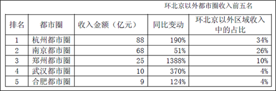 在环京成功经验的基础之上,环南京、环杭州均实现不俗的业绩,未来郑州、武汉等区域的收入也将快速增长。
