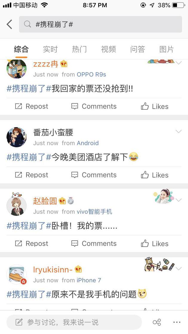 新浪科技讯 4月23日晚间消息,新浪科技发现,携程App宕机,目前酒店、机票等信息都无法搜索。此外,有网友反映,智行火车票小程序也出现同样状况。