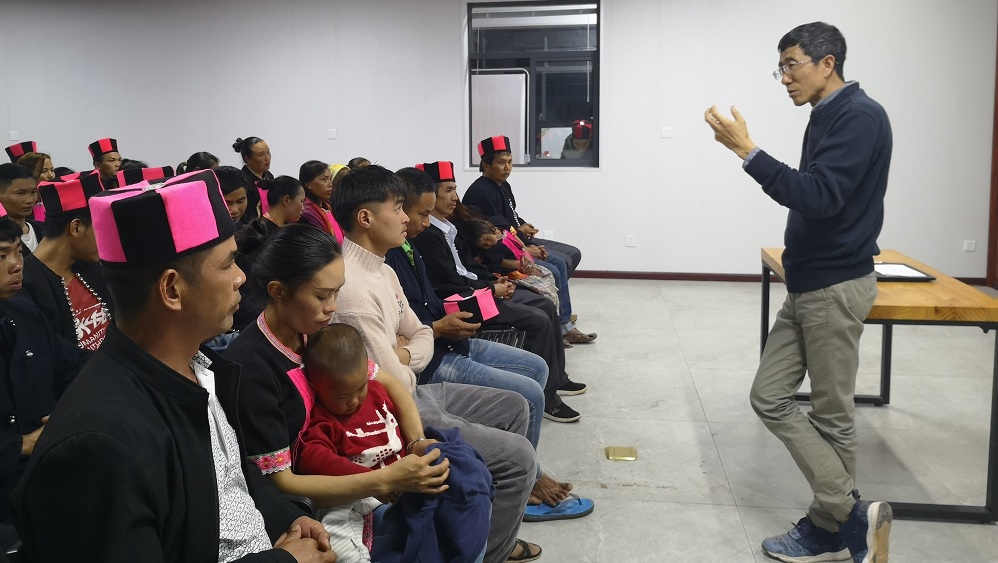 李小云教授在云南勐腊河边村给村民开发展大会,帮助建立合作社。受访者供图