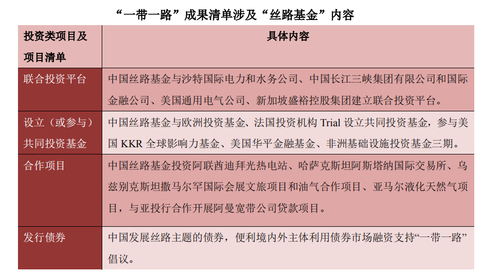 另一方面,从清单内容来看,包含多项与债券、债务问题相关的内容,涉及中国发展丝路主题的债券,便利境内外主体利用债券市场融资支持“一带一路”倡议等。