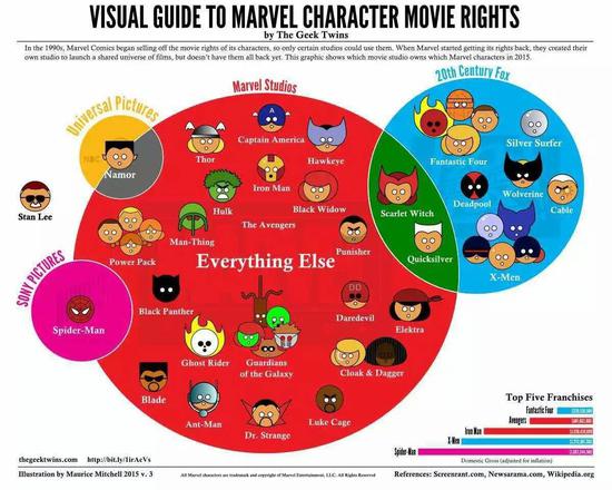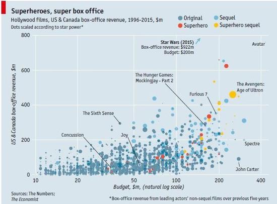 所以虽然超级英雄系列占美国电影票房的比例越来越高,但是这是一个结果,而且是体系迪士尼商业化能力的结果。漫威作为一个超级IP,在被迪士尼收购前,其推出的每一部电影都被诟病。而迪士尼却很好的做到了商业化,通过宏大的世界观,故事情节的独立和连贯相平衡,将复仇者联盟,钢铁侠打造成了一款超级印钞机。