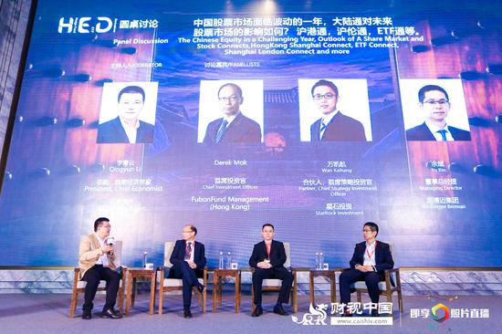 在圆桌“中国股票市场面临波动的一年,大陆通对未来股票市场的影响如何?”环节中, Fubon Fund Management香港首席投资官Derek Mok、路博迈集团董事总经理余斌及星石投资合伙人、首席策略投资官万凯航参与讨论。