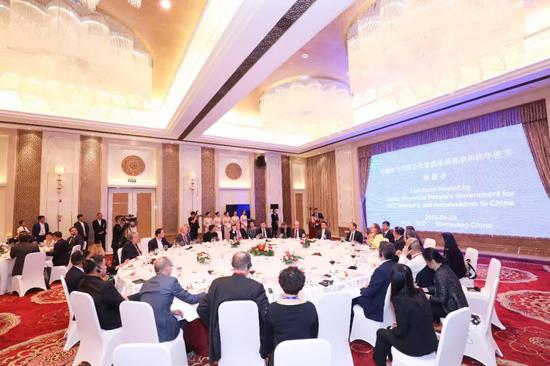 中国企业家俱乐部理事,新浪董事长兼首席执行官曹国伟主持餐叙会。他说,敦煌作为古代东西方贸易通商和文明交汇的枢纽,也是世界文明共同的精神财富,9国外交官与中方的共聚,将加深务实合作,推动共同发展。