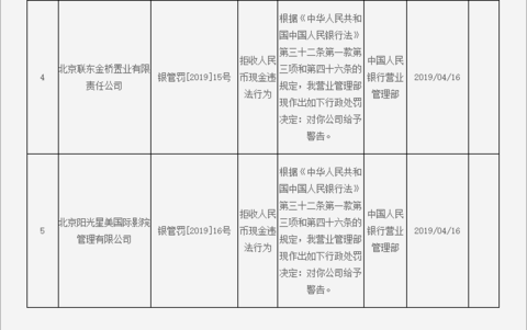 据央行营业管理部消息显示,日前人民银行营业管理部公示了5起处罚信息,涉及违法行为类型为拒收人民币现金。处罚决定日期为4月16日。