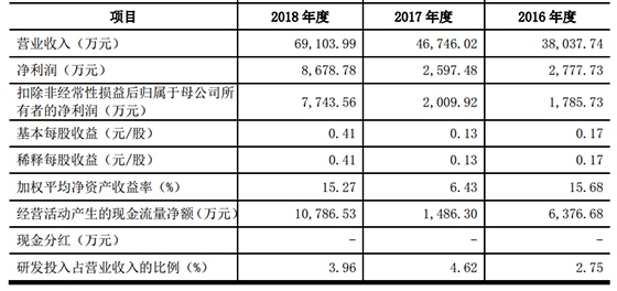 业绩方面,2016-2018年长阳科技的营业收入分别为38037.74万元、46746.02万元和69103.99万元;同期净利润分别为2777.73万元、2597.48万元和8678.78万元。