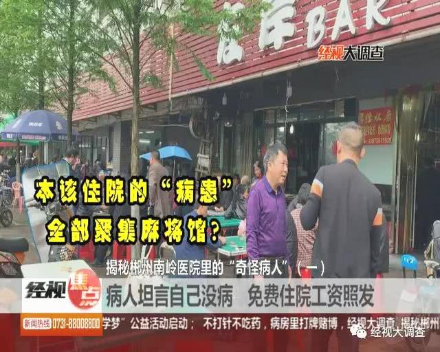 湖南郴州南岭医院出现一些奇怪的“病友”,这些“病友”各个精气神十足,每天既不打针也不吃药,却沉迷于打牌赌博,出院时还能在医院领到上千元现金。这些人为什么要住院?他们又是什么身份呢?带着一系列的疑问,记者赶赴郴州展开了调查。