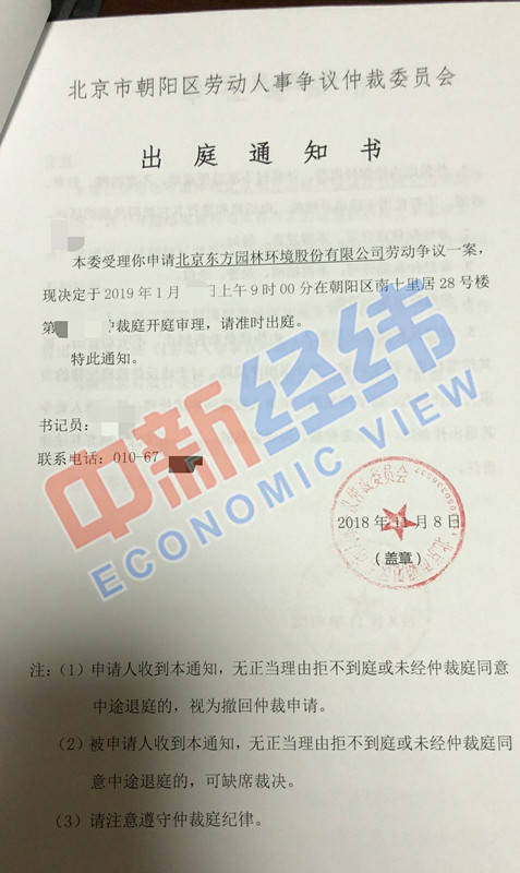 “公司承认欠薪,但就是不给,申请仲裁已经是我们讨薪的唯一出路了。”东方园林原员工李先生对中新经纬客户端说。此前有报道称,此次东方园林欠薪事件牵扯近千人,金额达上亿元。