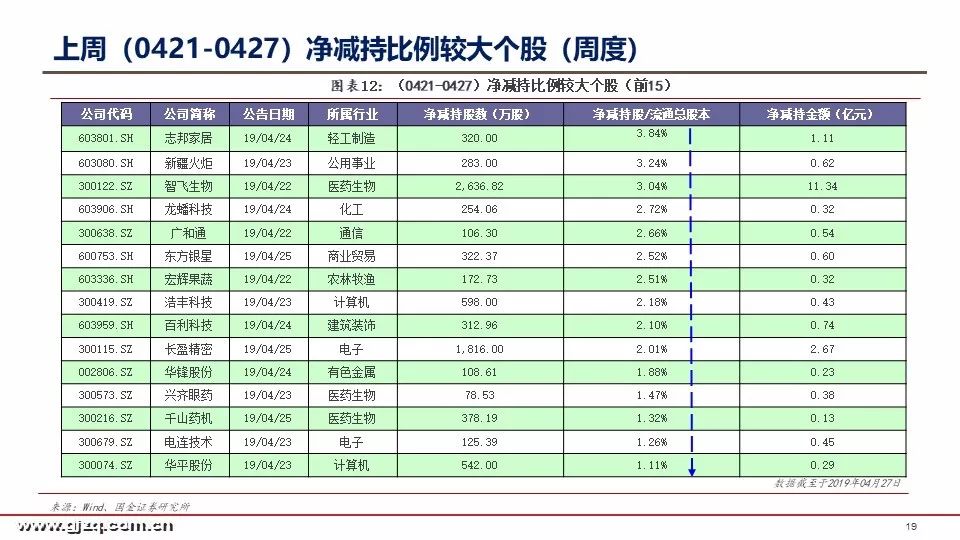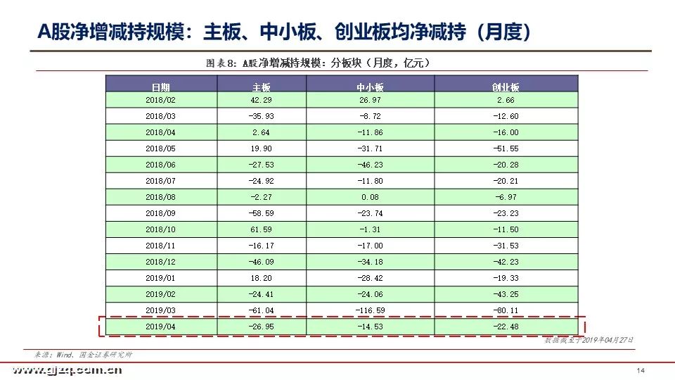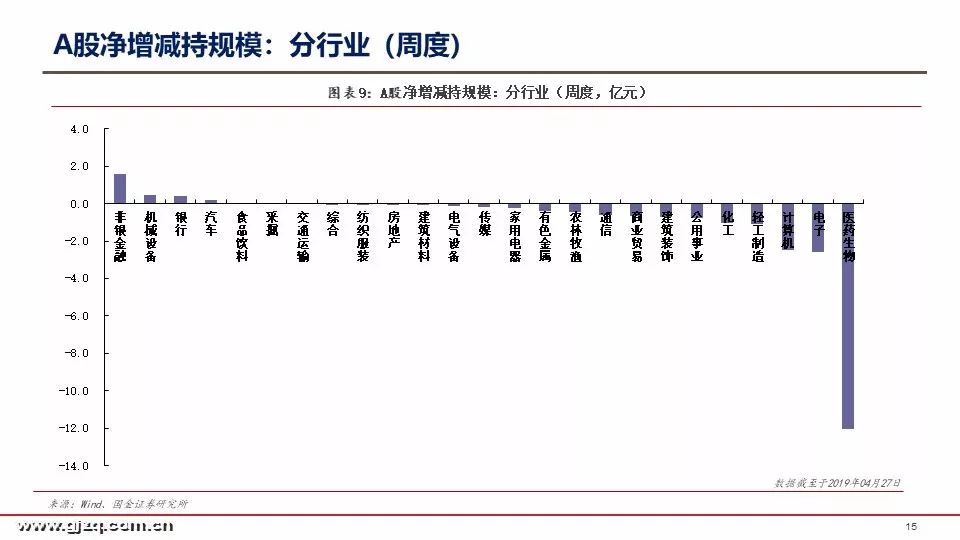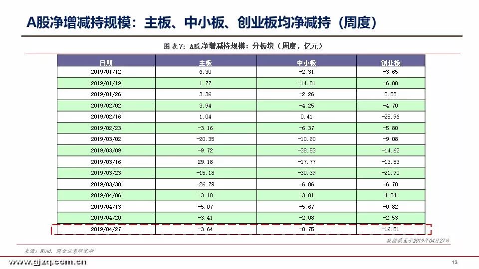 (2)A股板块增减持规模:本期A股主板、中小板、创业板均净减持。本期主板净减持,规模为3.64亿元;中小板净减持,规模为0.75亿元;创业板净减持,规模为16.51亿元。